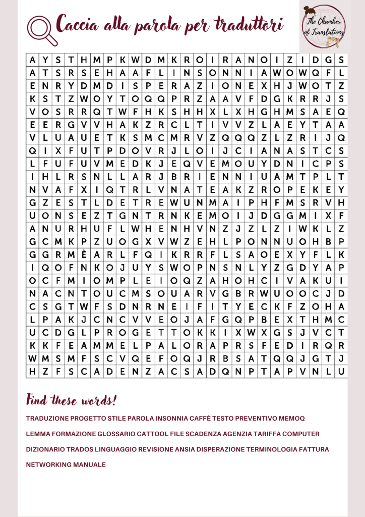 E le soluzioni? Contattaci via mail a info@thechamberoftranslations.com, oppure scrivici in DM sui nostri canali social per scoprire che punteggio hai fatto e confrontarti con noi!